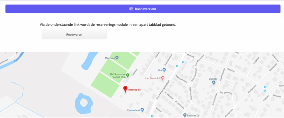 - Als je al reservering gemaakt hebt verschijnen deze nu. Wil je nog een reservering aanmaken? Klik dan op de "Baanoverzicht" button. Het kan zijn dat je even naar beneden moet scrollen om deze button op je scherm te zien.